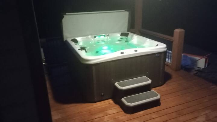 5-6 Person Luxury Hot Tub, Movie Projector, Grill, Outdoor Seating for 8, Outdoor TV, Fireplace and Games